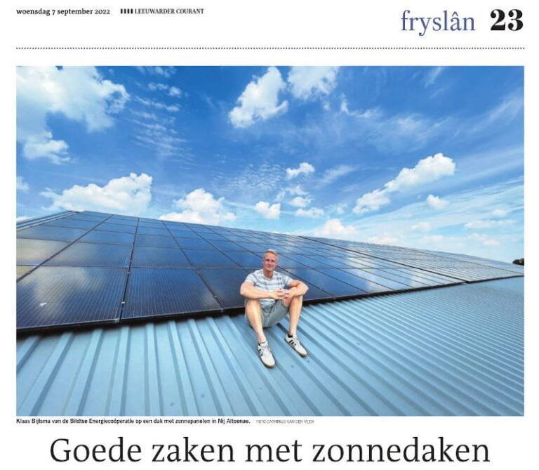 Nijs en Aginda Naar de aginda Nijs Deelname zonnedaken niet langer gekoppeld aan stroomverbruik September 2022 Interview in de Leeuwarder Courant met Klaas Bijlsma September 2022 Verslag Algemene Leden Vergadering 3 juni 2022 June 2022 Hoofdprijs Duurzame 30 voor Energie VanOns June 2022 « Previous1…1415161718…20Next » Meer nieuws Meld dij an foor ôns nijsbriefAl ’t lêste nijs leestou in ôns nijsbrief. Meld dij an met ’t formulier hieronder. Notice: JavaScript is required for this content.