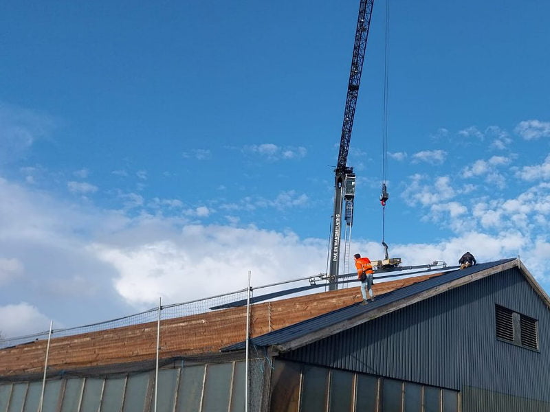 Ook het dak van de loods is klaar gemaakt voor de toekomst. Het asbest is gesaneerd en vervangen door moderne dakplaten. De onderliggende constructie van het dak is waar nodig versterkt. Hiermee is alles klaar voor het installeren van de zonnepanelen.